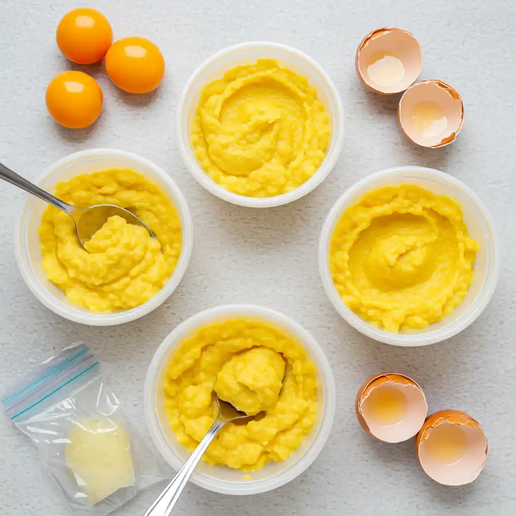 - For better organization, keep frozen yolks in portions of 2–4 per container. This way you thaw only what you need.