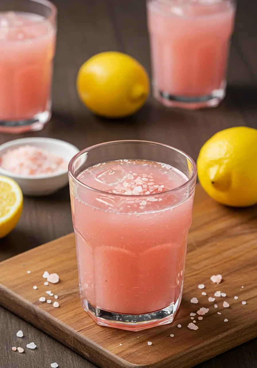 A mineral-infused hydration drink made with Japanese pink salt, sometimes with lemon or honey.