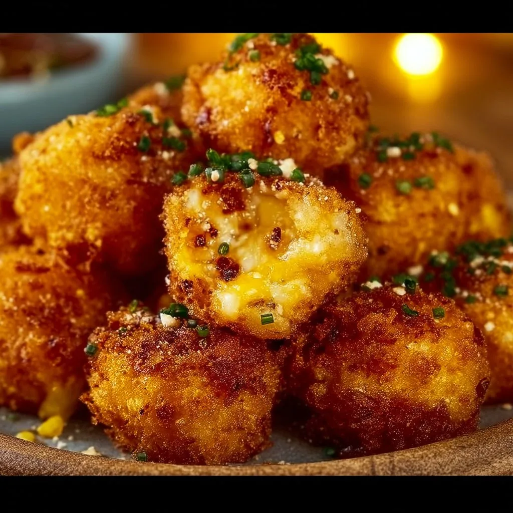 Delicious crispy corn cheese bites served as a tasty appetizer.