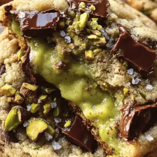 Imagine biting into a soft and chewy cookie that hides a warm, melty core of luscious pistachio cream. With the perfect blend of rich chocolate, crunchy pistachios, and a subtle sprinkle of flaky salt, these cookies promise an experience that’s both luxurious and comforting.