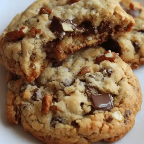 These cookies are heartier and more textured they combine oats, pecans, and chocolate chips, giving them a chewy, nutty, and slightly crisp edge. They’re essentially the “everything cookie” of the chocolate chip world!