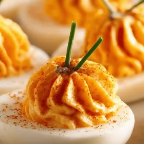 Easy to make, visually stunning, and bursting with creamy, tangy flavor, these pumpkin-inspired deviled eggs bring a bit of whimsy and warmth to any table.