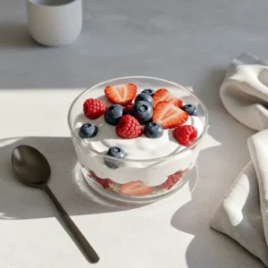 Step 2: Prepare berries by gently rinsing and patting dry with paper towels. Moreover, hull strawberries and slice larger berries into bite-sized pieces for easier eating. Furthermore, this preparation ensures even distribution throughout parfait layers.