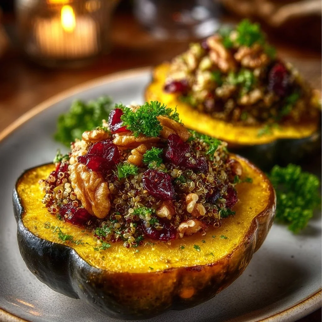 This acorn squash recipe is a showstopper. It combines aesthetics with flavors, making it a perfect centerpiece for your holiday table. The sweetness of the squash pairs beautifully with the nutty, fluffy quinoa, while herbs and spices add depth. Plus, it’s a healthy option that is packed with nutrients. Each bite is a delightful blend of textures and flavors that celebrate the season.