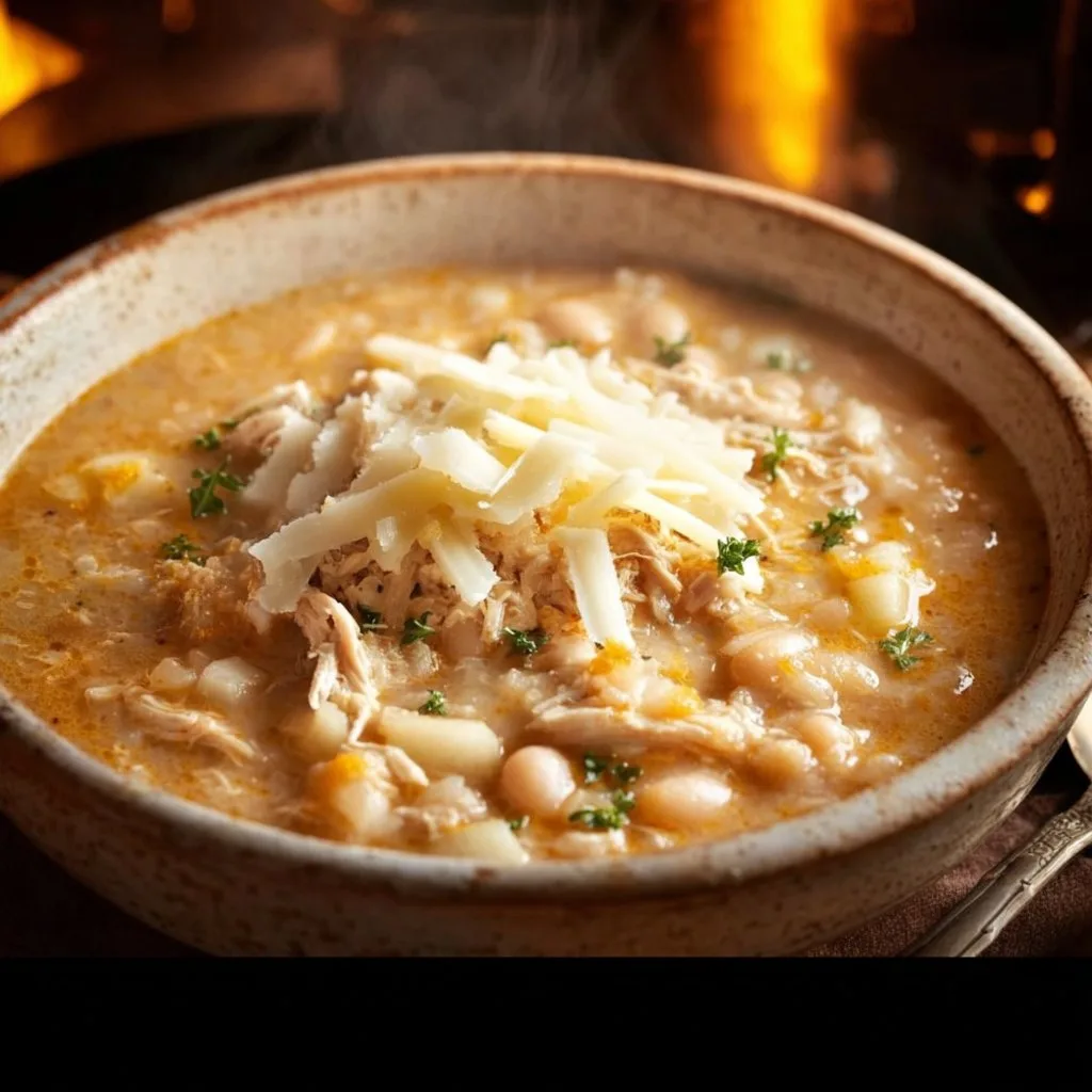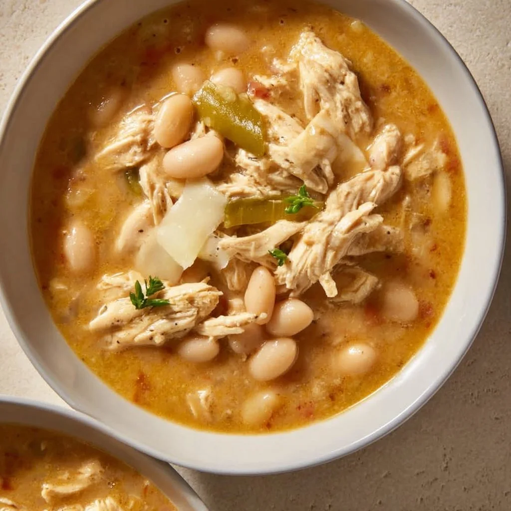 A delightful chili combining tender chicken, creamy white cheddar, and the subtle sweetness of apples, perfect for chilly evenings.